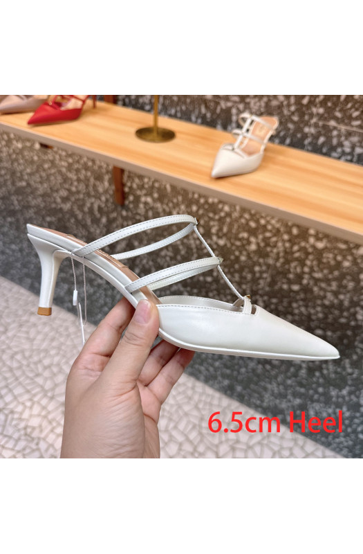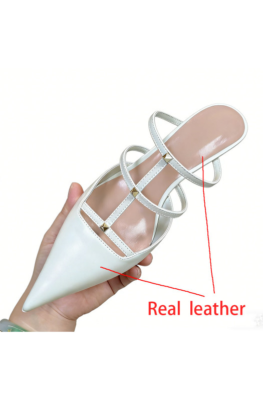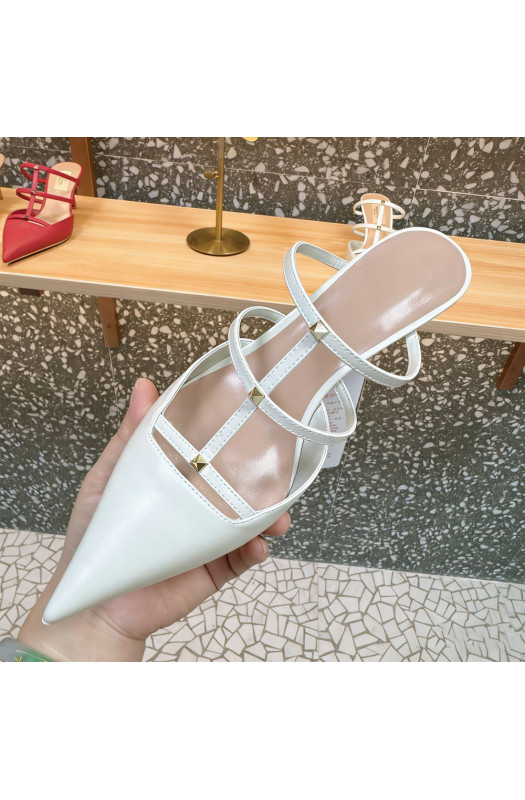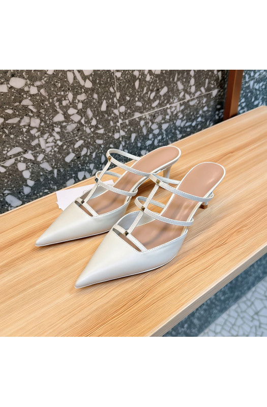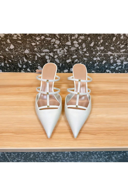 Women's White Pointed Toe T-Strap Slingback Mules VT26040