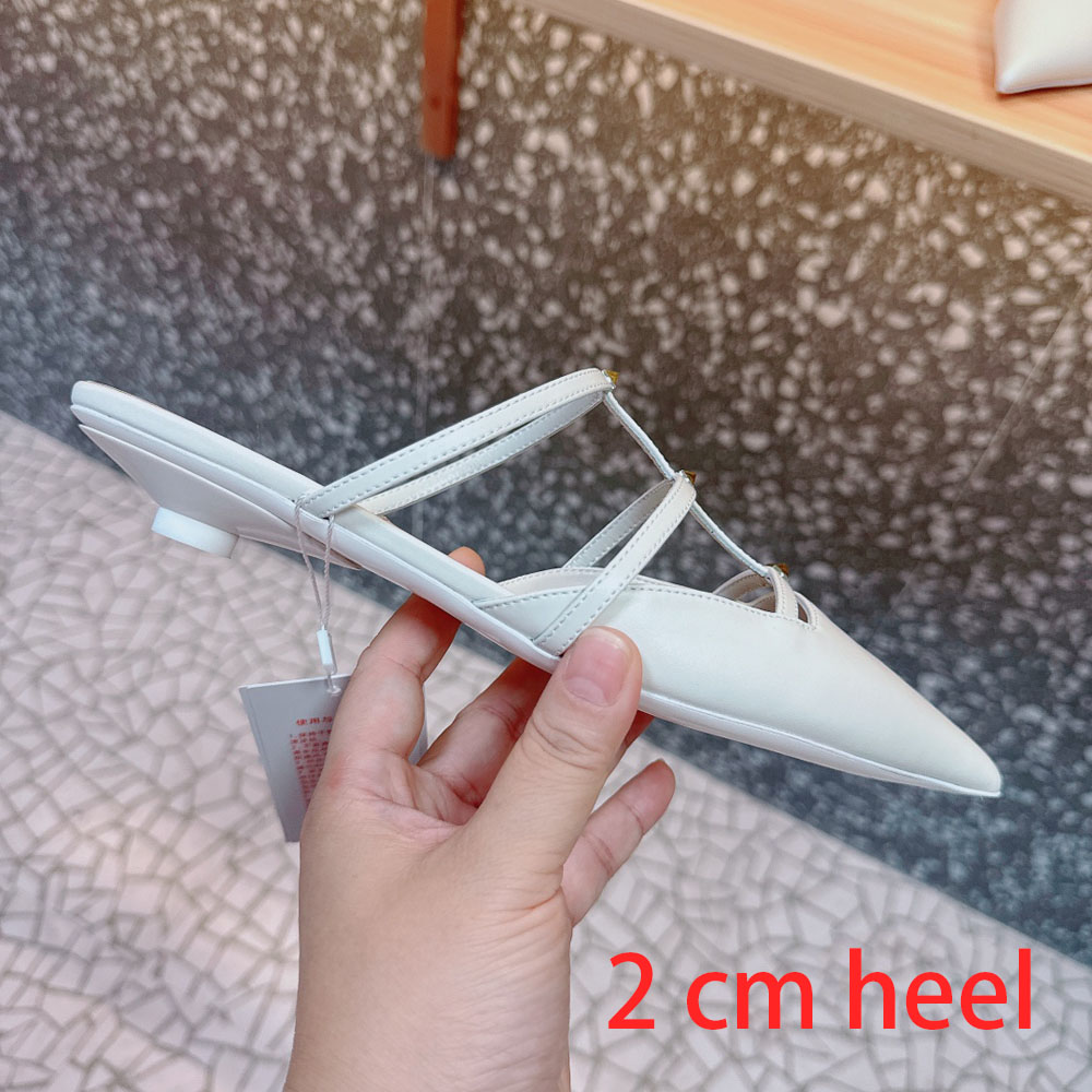 Women's White Pointed Toe T-Strap Slingback Mules – Gold Studded Kitten Heel Sandals VT26040