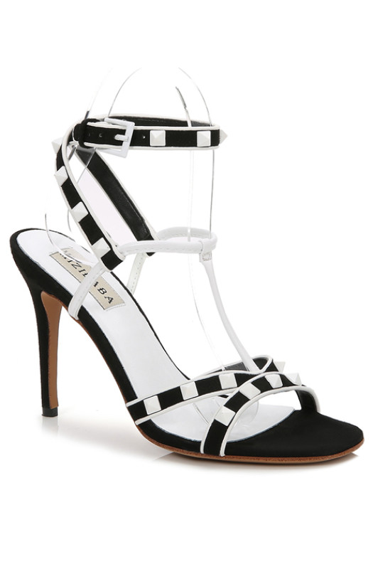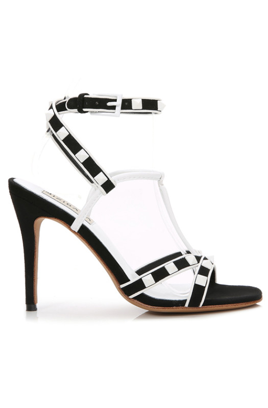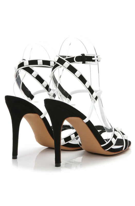 BLACK STRAPPY WHITE RIVETS SLINGBACK STILETTO HEELS