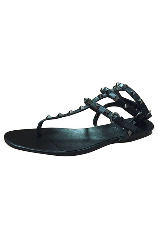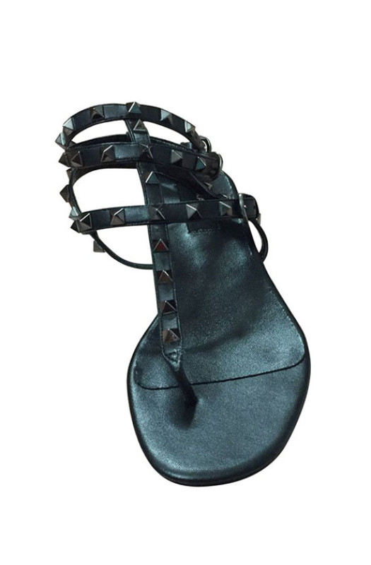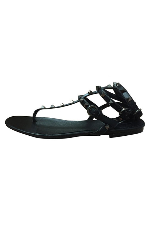 3-Strap ALL BLACK STUDDED STRAPPY FLAT SANDALS